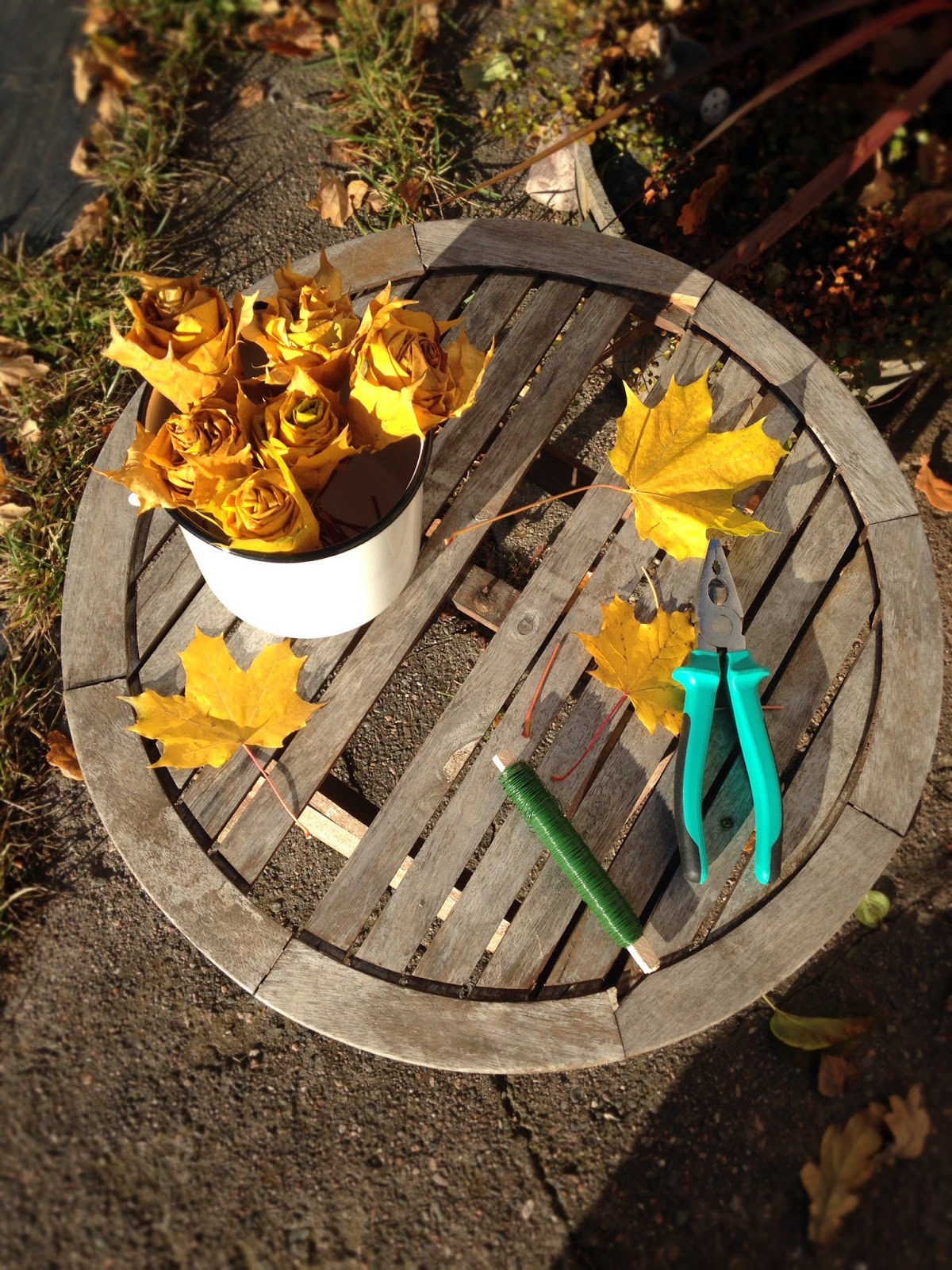 | Vaahteranlehtiruusuja ja työvälineet Maple leaf roses and the making equipment |